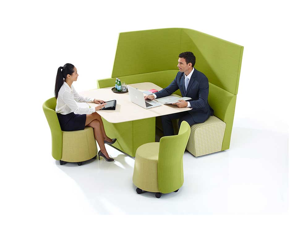 Individual spaces seamlessly integrate with larger, more collaborative working configurations, at lounge, table or café height. Facilitating, both concentrated personal work and collaborative team work.